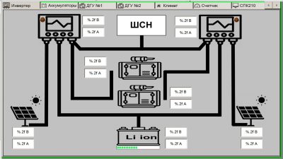 l               отображение в режиме реального времени электрических параметров (напряжение, ток, мощность), времени работы и доли участия источников в общем энергобалансе;