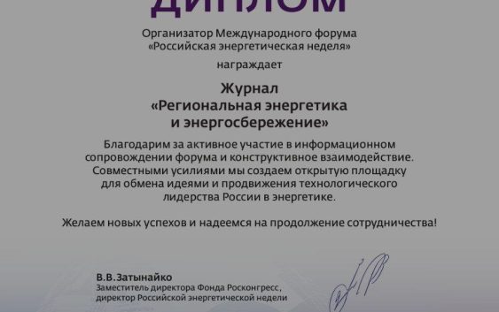 Редакции информационно-аналитического журнала «Региональная энергетика и энергосбережение» объявлена официальная благодарность Фонда «Росконгресс» за активное участие в информационном сопровождении Международного форума «Российская энергетическая неделя», проходившего в Москве 15 – 17 октября 2025 года, и за конструктивное взаимодействие.